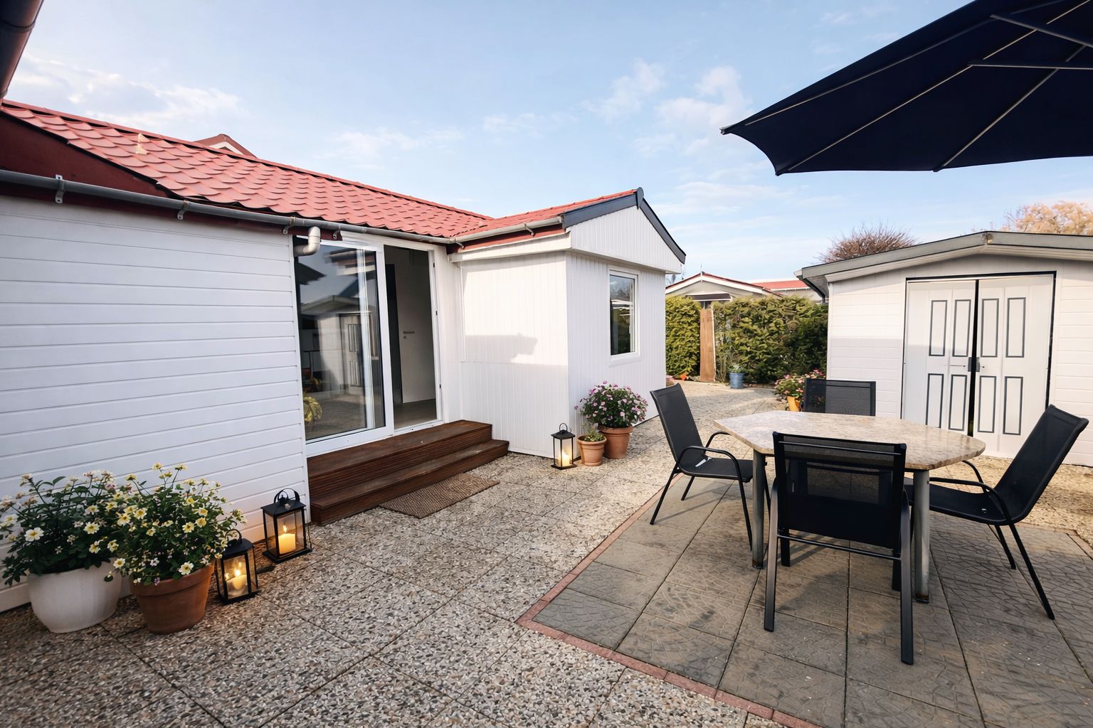 The complex also offers a wide range of leisure activities right on the water: a communal jetty invites you to linger, while fishing and boating offer ideal conditions for relaxing hours in nature.